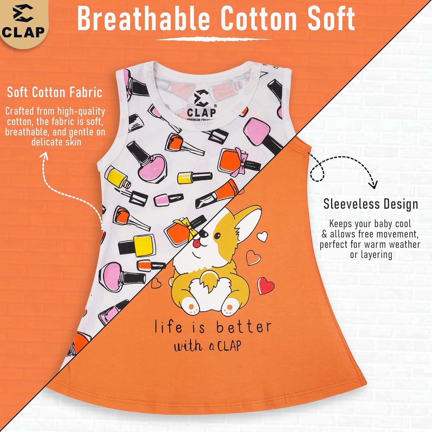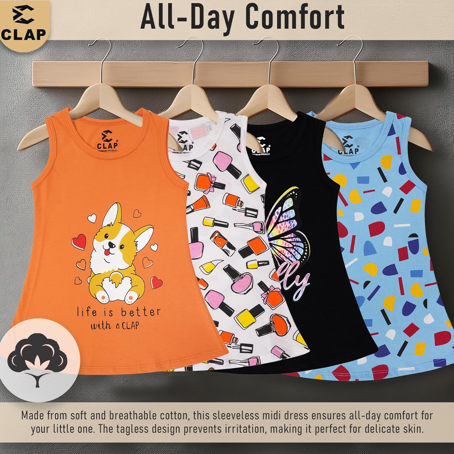 Wrap your little one in everyday comfort with this adorable Pack of 4 Baby Girl Midi Dresses from CLAP. Made from 100% premium cotton, these sleeveless dresses are soft, breathable, and gentle on your child’s delicate skin. The flowy A-line silhouette and knee-length design allow for easy movement, making them perfect for active toddlers. Each dress features a tagless neckline, ensuring itch-free wear from morning play to evening snuggles.